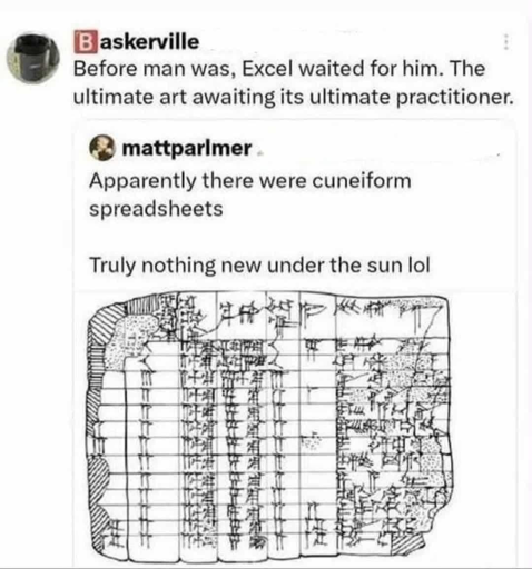 minus-squareProbablyBaysean@lemmy.calinkfedilinkarrow-up8·8 days agoEhh, double entry accounting being invented at 3000 bc was a basic part of most accounting 101 classes.