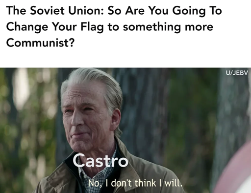 arrow-up1109arrow-down1imageHonestly, good call by Castro. Cuba's flag is A E S T H E T I Cmedia.piefed.socialPugJesus@piefed.socialM to History Memes@piefed.socialEnglish · 2 months agomessage-square1linkfedilink